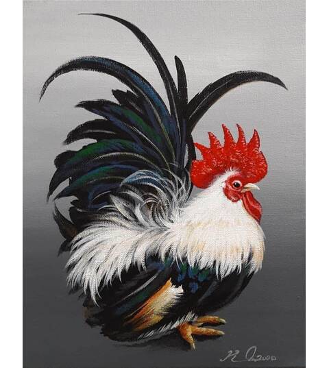 In Asia rooster symbolizes good luck, wealth and fortune. All in all, this painting is an absolute must-have for any house.