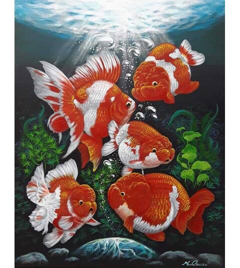 A 24 * 30 cm acrylic painting of aquarium life written on canvas, it belongs to the brush of a remarkable Thai artist Krisanachai Sripila.