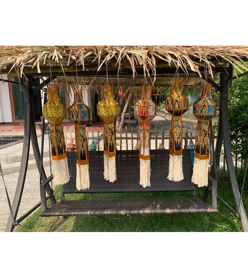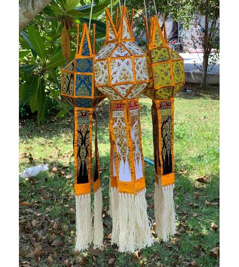 The decoration of the lantern will vary according to suitability. Each piece is unique – fabric patterns, decorations, and exact shades may vary slightly due to the handmade process.
