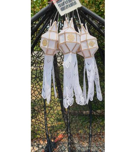 Create a warm, inviting atmosphere with our traditional Lanna hanging lantern, meticulously handmade from natural bamboo and wrapped in premium cotton fabric. This lantern blends rustic beauty with cultural heritage—perfect for enhancing any space, whether it’s your living room, balcony, café, restaurant, or garden.