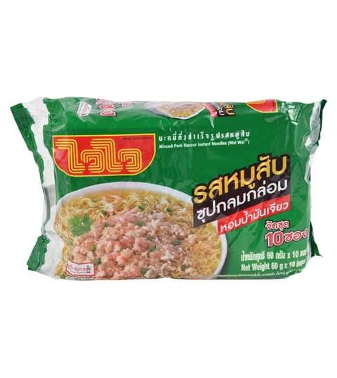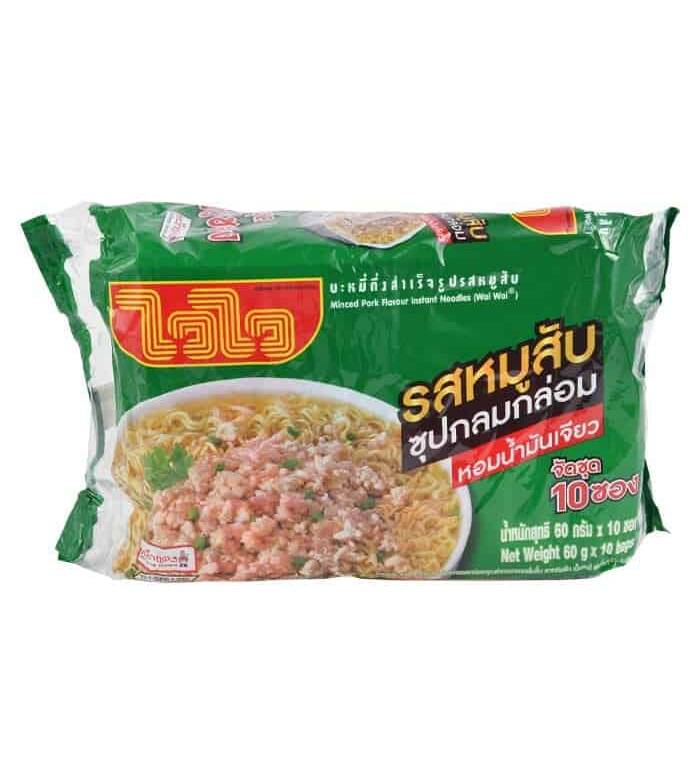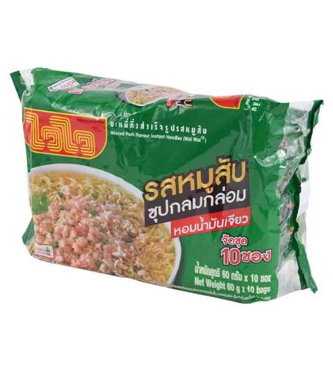 WAI WAI Instant Noodles Minced Pork Flavour 60 g. Pack 10