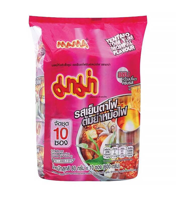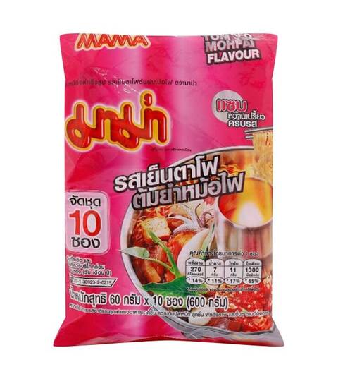 MAMA Instant Noodles Tom Yum Yen Ta Fo Flavor 60 g. Pack 10