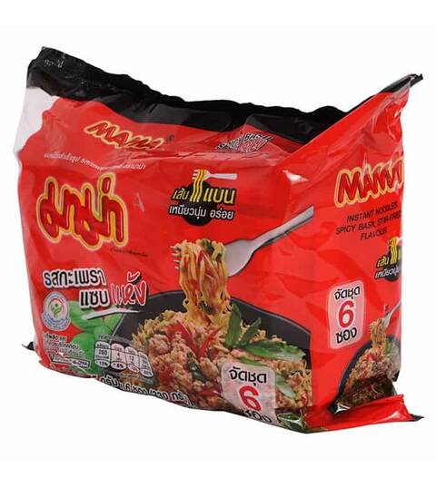 MAMA Instant Noodle Spicy Basil Stir-Fried Flavor 55 G. Pack of 6