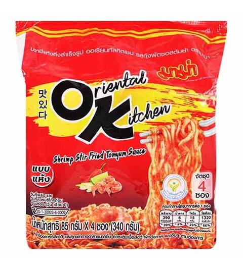 MAMA Oriental Kitchen Dried Instant Noodles Shrimp Stir-Fried Tom Yum Sauce Flavour 85 g. Pack 4