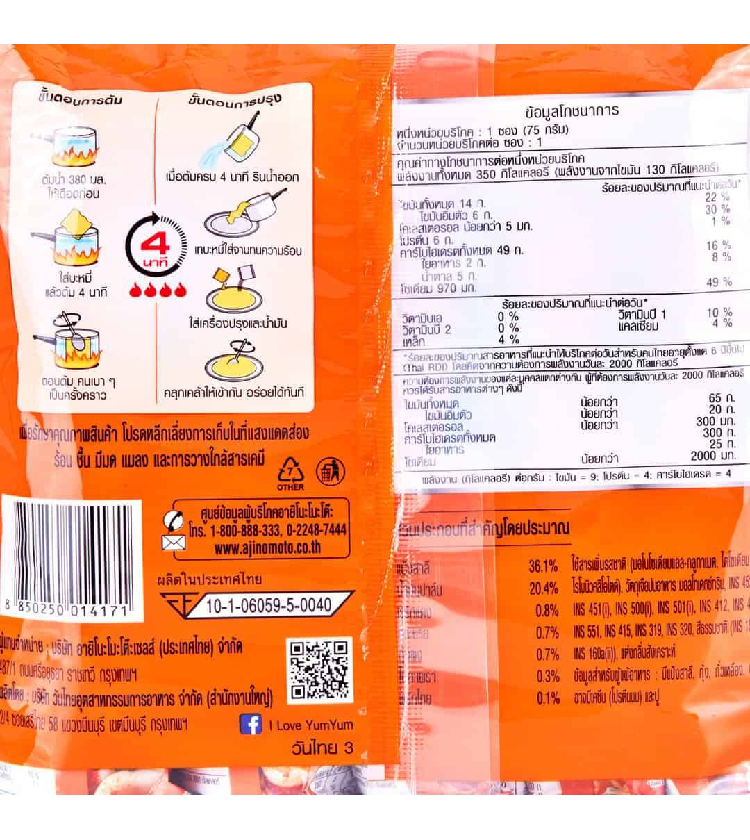 YUM YUM Sood-Ded Instant Dried Noodles Seafood Pad Char Flavor 75 g. Pack 5